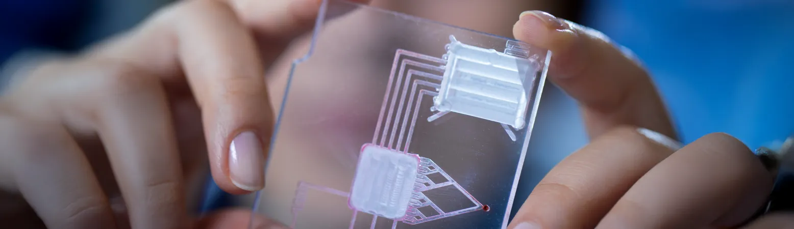 Zur Verbesserung des Tierschutzes und der Patientensicherheit entwickeln Forscher neue Testsysteme. Eine davon: sogenannte Organ-on-a-Chip-Modelle. Dabei handelt es sich um kleine, biofunktionale Chips mit lebenden Zellen eines Organs – hier: Leberzellen.